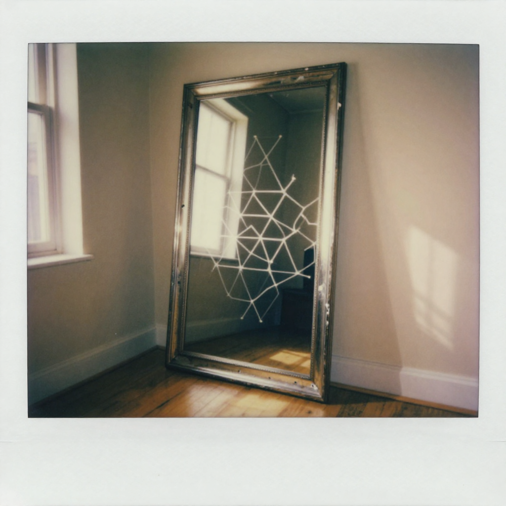 ![instant Polaroid photograph, vintage 1970s aesthetic, faded colors, white border frame, slightly overexposed, nostalgic lo-fi quality, amateur snapshot, An old, slightly warped full-length mirror leaning against a blank beige wall, its silvering斑驳 (peeling in delicate curls), revealing beneath it not the wood of the frame but faint, glowing lattices of shifting geometric patterns—hexagons dissolving into dual triangles, lines reconfiguring like living group theory diagrams—softly pulsing with each subtle shift. Late afternoon sunlight from a window to the left casts a warm, dusty glow, highlighting the peeling edges while the reflected patterns emit a cool, indirect luminescence. The floor is bare hardwood, one shadow of a curtain fold creeping into the lower right. The atmosphere is quiet, still, as if the mirror is remembering the laws of a universe it once clearly showed—but now speaks in symmetries too deep for eyes. [Z-Image Turbo] instant Polaroid photograph, vintage 1970s aesthetic, faded colors, white border frame, slightly overexposed, nostalgic lo-fi quality, amateur snapshot, An old, slightly warped full-length mirror leaning against a blank beige wall, its silvering斑驳 (peeling in delicate curls), revealing beneath it not the wood of the frame but faint, glowing lattices of shifting geometric patterns—hexagons dissolving into dual triangles, lines reconfiguring like living group theory diagrams—softly pulsing with each subtle shift. Late afternoon sunlight from a window to the left casts a warm, dusty glow, highlighting the peeling edges while the reflected patterns emit a cool, indirect luminescence. The floor is bare hardwood, one shadow of a curtain fold creeping into the lower right. The atmosphere is quiet, still, as if the mirror is remembering the laws of a universe it once clearly showed—but now speaks in symmetries too deep for eyes. [Z-Image Turbo]](https://081x4rbriqin1aej.public.blob.vercel-storage.com/viral-images/2bcde55e-cf7f-4cdc-8f5d-fc5458a8bce4_viral_4_square.png)