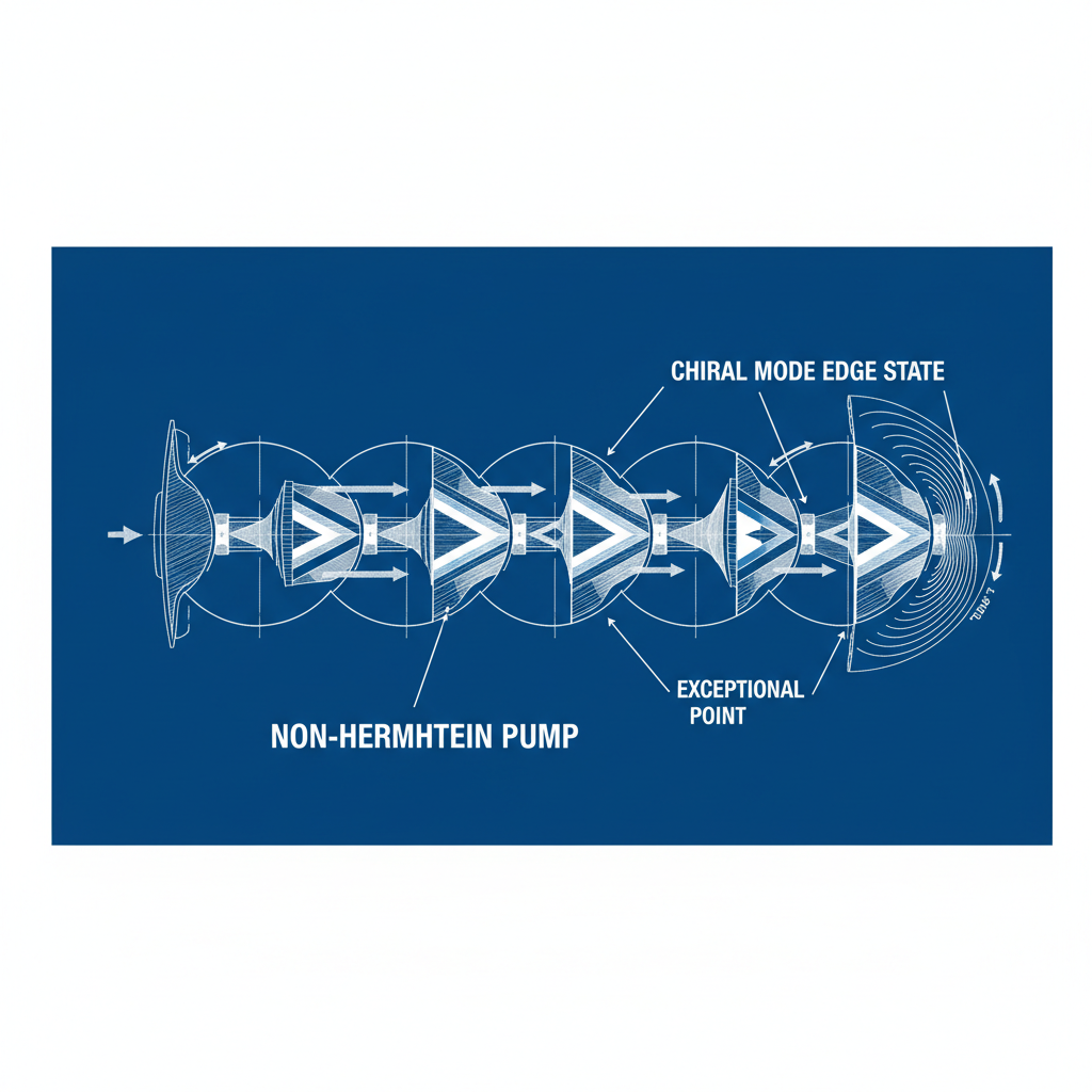 ![technical blueprint on blue paper, white precise lines, engineering annotations, 1950s aerospace, a one-sided quantum ratchet, composed of a linear chain of coupled resonators with asymmetric tunneling elements, shown in cutaway view revealing internal bias gradients and directional gain-loss profiles; annotation lines label 'Non-Hermitian Pump,' 'Exceptional Point,' and 'Chiral Mode Edge State'; clean white negative space surrounds the diagram, schematic arrows embedded in the structure show unidirectional flow; flat, precise lighting from above highlights structural asymmetry and engineered tilt; technical, analytical atmosphere of a discovered principle [Nano Banana] technical blueprint on blue paper, white precise lines, engineering annotations, 1950s aerospace, a one-sided quantum ratchet, composed of a linear chain of coupled resonators with asymmetric tunneling elements, shown in cutaway view revealing internal bias gradients and directional gain-loss profiles; annotation lines label 'Non-Hermitian Pump,' 'Exceptional Point,' and 'Chiral Mode Edge State'; clean white negative space surrounds the diagram, schematic arrows embedded in the structure show unidirectional flow; flat, precise lighting from above highlights structural asymmetry and engineered tilt; technical, analytical atmosphere of a discovered principle [Nano Banana]](https://081x4rbriqin1aej.public.blob.vercel-storage.com/viral-images/8388d268-7a78-4f46-bf36-2f61359f92a8_viral_1_square.png)