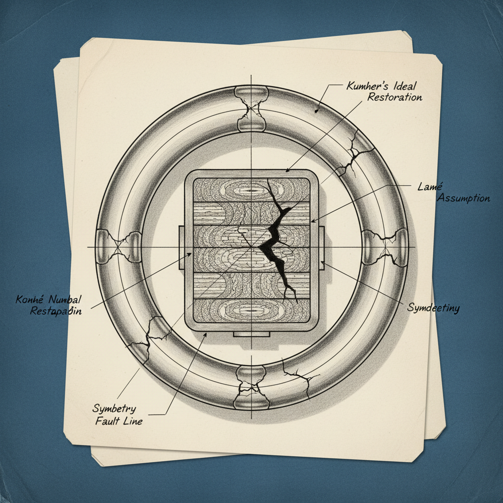 ![technical blueprint on blue paper, white precise lines, engineering annotations, 1950s aerospace, an intricate geometric lock core made of interlocking crystalline rings, cutaway to reveal internal strata of ideal number partitions, fractured at points where unique factorization fails, with hand-drawn annotation lines labeling 'Kummer's Ideal Restoration', 'Lamé's Assumption', and 'Symmetry Fault Line', soft graphite shading from above, precise technical drawing in ink on drafting vellum with clean negative space [Nano Banana] technical blueprint on blue paper, white precise lines, engineering annotations, 1950s aerospace, an intricate geometric lock core made of interlocking crystalline rings, cutaway to reveal internal strata of ideal number partitions, fractured at points where unique factorization fails, with hand-drawn annotation lines labeling 'Kummer's Ideal Restoration', 'Lamé's Assumption', and 'Symmetry Fault Line', soft graphite shading from above, precise technical drawing in ink on drafting vellum with clean negative space [Nano Banana]](https://081x4rbriqin1aej.public.blob.vercel-storage.com/viral-images/df94d328-1dc7-46e0-8ad8-0e38748b8f61_viral_1_square.png)