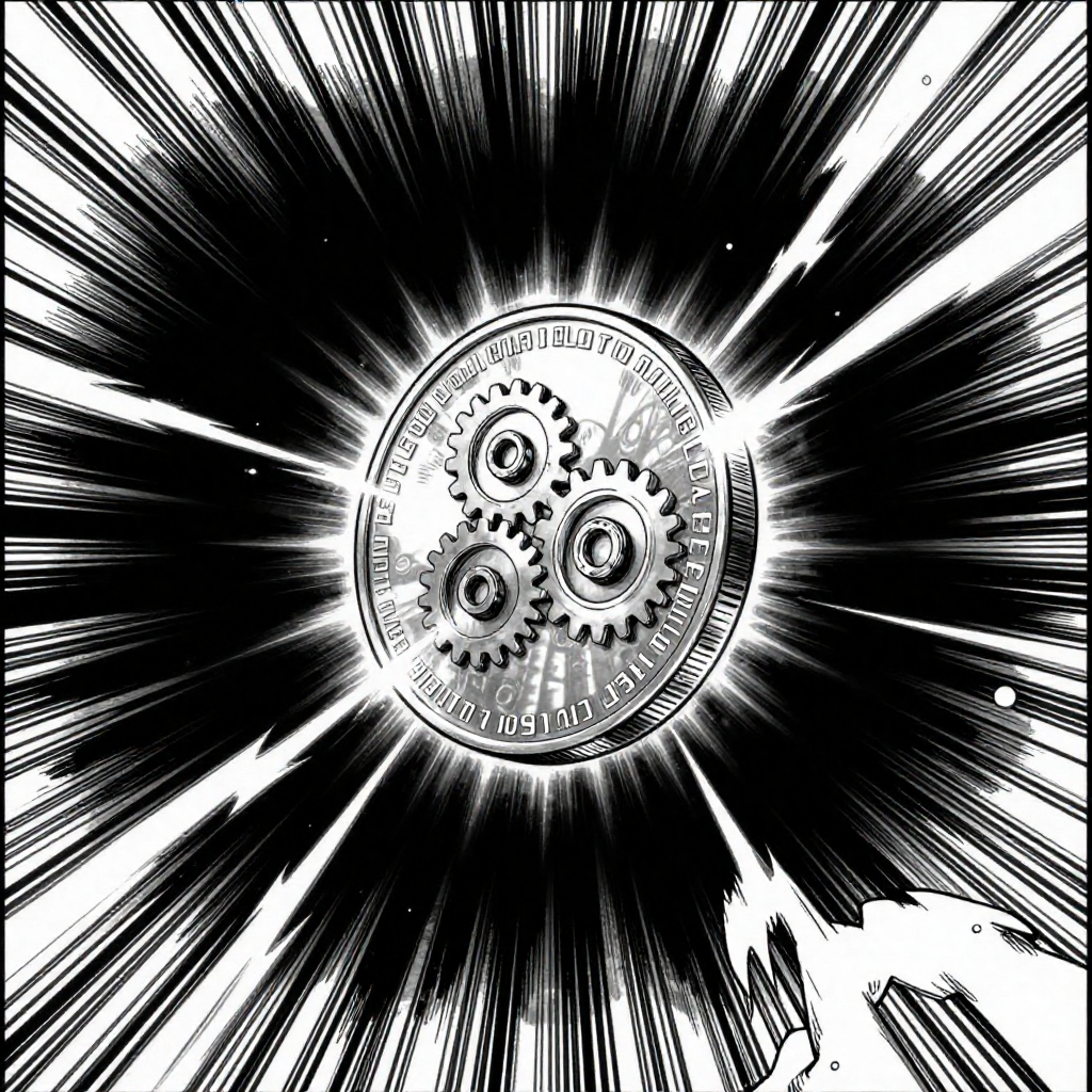 ![black and white manga panel, dramatic speed lines, Akira aesthetic, bold ink work, a metallic double-sided coin suspended mid-spin, its surface etched with micro-gears that shift against themselves, speed lines bursting outward from its equator like shockwaves, lit from below by a faint cryptographic glow, floating in infinite black space with opposing gravitational tugs warping the air around it [Z-Image Turbo] black and white manga panel, dramatic speed lines, Akira aesthetic, bold ink work, a metallic double-sided coin suspended mid-spin, its surface etched with micro-gears that shift against themselves, speed lines bursting outward from its equator like shockwaves, lit from below by a faint cryptographic glow, floating in infinite black space with opposing gravitational tugs warping the air around it [Z-Image Turbo]](https://081x4rbriqin1aej.public.blob.vercel-storage.com/viral-images/f6eaf1c5-90bf-4492-a457-b439c44c0984_viral_2_square.png)